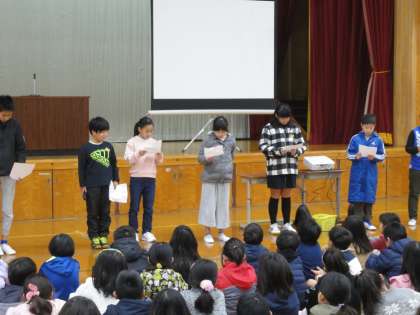 全員元気よく登校してきてくれました。3学期の始業式と朝会がありました。その中で,今日は委員会からの発表がありました。緊張するなか,大きい声でゆっくり言えていました。