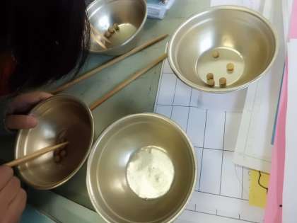 21日に行われる「豆つまみ大会」に向けてクラスでも練習を始めました。初めは,なかなかうまくいかないこともありましたが,毎日練習しているとコツがわかってきました。