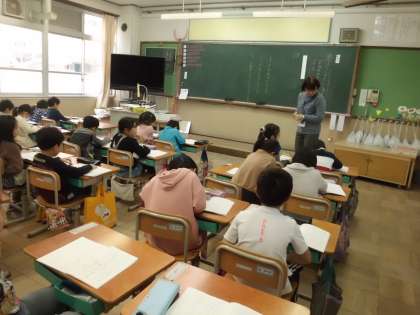 国語科で「ものの名まえ」の学習をしています。今日は,お店やさんごっこをしました。「お店の人」と「お客」の立場を意識した話し方ができていた子どもたち。活動の後は,やりとりを振り返り,工夫したことや楽しかったことについて話し合いました。