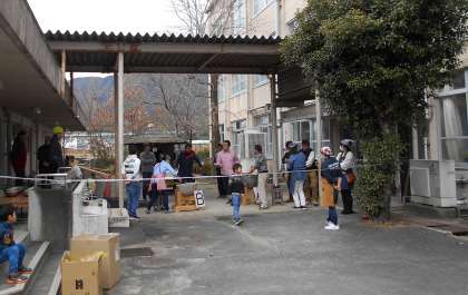 1月26日(日),「もちつき・たこあげ大会」が開催されました。学校の西側では,少年補導委員会の皆様が用意して下さった凧揚げを楽しみました。また,冷えた体を温める豚汁も振る舞われました。また,校内ではおやじの会・PTA・地域の皆様による,もちつき大会も開催されました。学校の西側の田で育てたもち米を使い,うすでついた本格的なお餅をいただきました。寒い日となりましたが温かい豚汁とつきたてのお餅で身も心も温かくなりました。