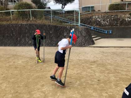 今日の体育はフレアスポーツの学習で外で竹馬や一輪車をしました。苦手意識をもっている子どももいましたが,やってみるとすごく楽しそうに友達に助けてもらいながらやっていました!昼休みにもあきらめず練習をしている子どもの姿が!そんな輝いた姿がありました♪