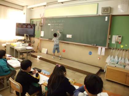 算数科で「おなじかずずつ」の学習をしています。数図ブロックを操作したり,絵や式をかいたりしながら説明する活動をしました。ふり返りの時間には,2個のまとまりや5個のまとまりを意識しながら同じ数ずつ数えるには,「絵にかいたり,数図ブロックを操作したりすると考えやすい。」と発表していた子ども達でした。