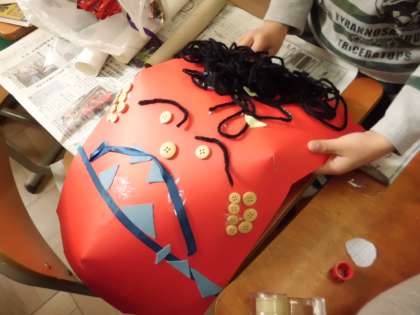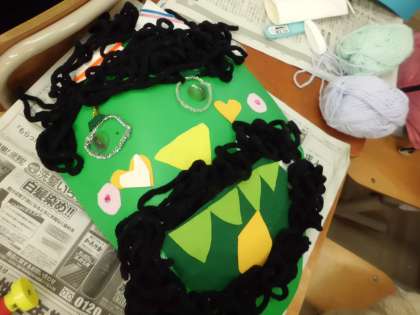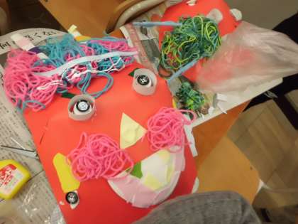 図画工作科で取り組んできた「おにのおめん」が完成しました。赤鬼さんに青鬼さん,どの鬼も表情豊かで,思わずニッコリしてしまいます。ボタンや毛糸・・・色々な材料の特徴を生かして制作しました。来週の作品展で展示しますので,是非ご覧ください。