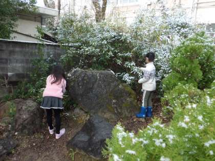 火曜日の朝,学校にも少し雪が積もっていました。その雪を集めて,楽しそうに遊んでいました。