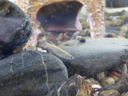 さて,写真中央と写真下のメダカが写っています。どちらかがおすとめすでしょうか。メダカのおすとめすの見分け方も教科書にのっています。調べてみましょう。