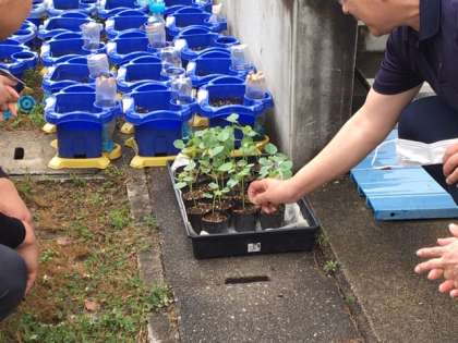 「大原野の杜」の方々が,ケナフの苗を届けてくださいました。4年生が一緒にケナフを育て,紙すき体験をします。楽しみです。