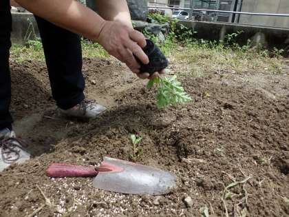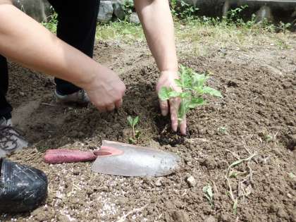 みんなが学習相談日に選んでくれた野菜の苗を,それぞれ先生たちが,畑に植えました。野菜さんたちも広いお部屋に入れてうれしそうでした。また,野菜さんたちの様子を伝えていこうと思います。
