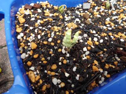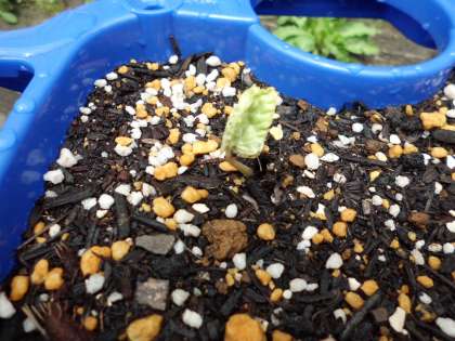 この前,せんせいたちがまいたあさがおに げんきいっぱいの めがでました。