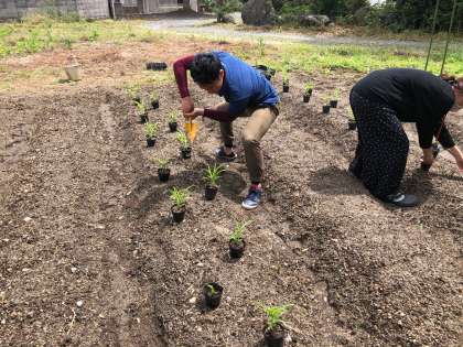 今日のお昼に,学校の裏の畑にポップコーンの苗を植えました!土を掘って,そこにポットに入った苗を植えて水をやりました。早く大きくなるのが楽しみです!またみんなが学校に来たら,雑草抜きや水やりをして大切に育てていこうね!