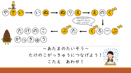 さぁ,たけのこがっきゅうへとつながりましたか。
