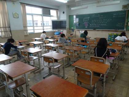 手洗いうがいをして教室に入った後,何も言わなくても自分たちで勉強を始める姿が・・・。なんて素晴らしいことでしょう!!みんなのキラキラしたかっこいい姿を先生たちは見逃さなかったですよ!
