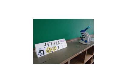 5年生の教室の後ろに「メダカのたまご〜観察コーナー〜」を設置しました。初めて見るメダカのたまごに子ども達は,少し驚いた様子でした。