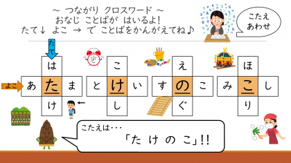 さて,「つなげて,つなげて,つなげよう」では,ことばをつなげることができたでしょうか。では,こたえあわせするよ!