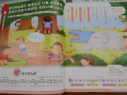 音がくの きょうかしょに 「かくれんぼ」というきょくが のっています。
