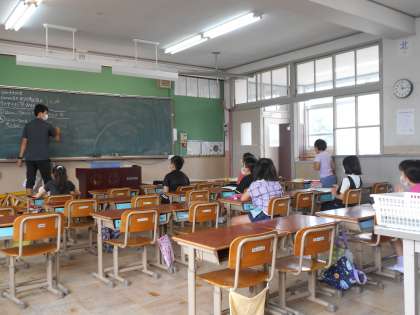今日はAグループよりも人数が少ないので,少し緊張感のある授業になりました。ですが,社会科では,教科書のイラストを見て気づいたことを発表する活動の中で,全員が2回以上発表しました。上にまっすぐ伸びた挙手が,たくさん見られました。この雰囲気を続けられるようにしていきたいです。