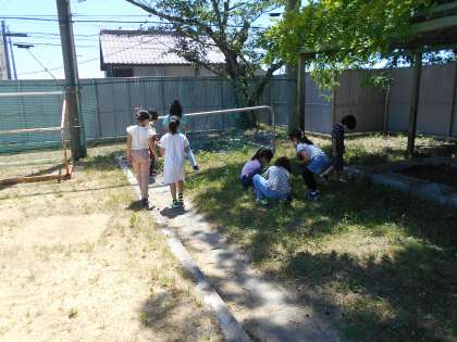 今日の理科では,虫メガネを使って虫や花などの生き物を観察する活動をしました。子どもたちは虫メガネを使えることに大はしゃぎでした。「バッタを虫メガネで見たら体と触角の色が違う!」「お花のところに小さい虫がいた!」と小さな世界を楽しんでいました。