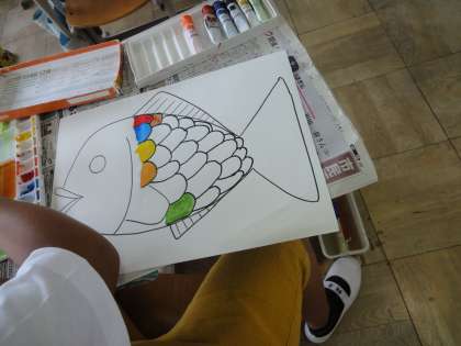 図画工作科の学習で魚のうろこを色ぬりしました。
