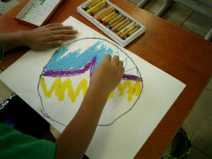 図画工作科で「ひみつのたまご」のたまごを描きました。
