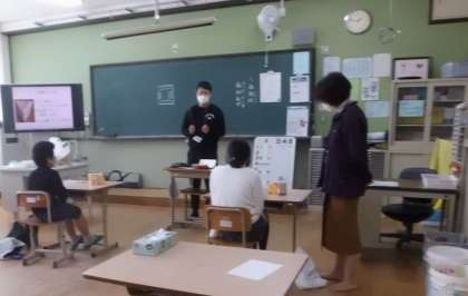 今日は待ちに待った『中学校体験』です。ドキドキワクワクしていたけど,中学校の先生たちはあたたかく迎えてくれました。