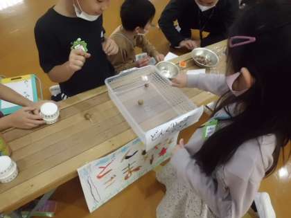 どんぐりのこま屋さんや,めいろ屋さん,写し絵屋さんなど,工夫を凝らしたわくわくを,子どもたちはとっても楽しんでいました。