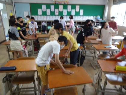 朝,席替えをすることを伝えると,喜びの歓声が!!席を移動する様子を見ていると,見つけましたキラキラを!!休みの友達の席,たけのこ学級の友達の席を進んで動かしている姿がたくさんのところでキラキラと輝いていました。休んでいても,離れていても大切な仲間です。この気持ちをずっとずっと忘れないでいよう。