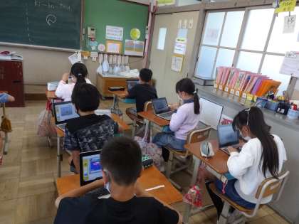 5年生になり,GIGA端末タブレットを使用した学習をどんどん取り入れていきます。パソコンの起動操作も早くなり,子ども達はスムーズに使えるようになっています。日々成長!!さすがデジタル世代の子ども達。使い方もすぐに身につけ,キーボードを入力する姿は活き活きとしていて,思わずパシャリ。どんどん使って,学習に生かしていきたいです☆