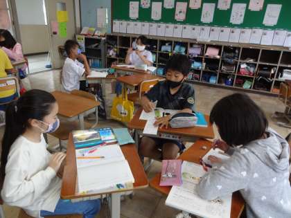 国語科の学習で「きいてきいてきいてみよう」という単元に取り組んでいます。今日は,グループで聞き手,話し手,記録者の順番を決め,友達との関わりを思い出しながら,知っていることをまとめました。グループで優しい言葉をかけあって,順番を決めている姿,まさしく,協力し合っている瞬間でした!!こういう,瞬間をどんどん繋いで,世界一のクラスにしていこう。