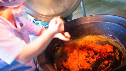 給食のカレーにテンションの上がる子どもたち。