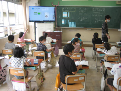 2年生は算数の学習をしていました。一生懸命考えて問題解決に取り組んでいました。