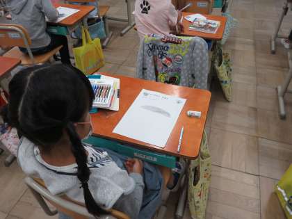 どの花が育ててみたいかの問いかけに「あさがお」の声がとても多かったので,1人1鉢であさがおを育てようということに決まりました。種を植えるために必要なものを出し合い,種をよくみて絵にかきました。