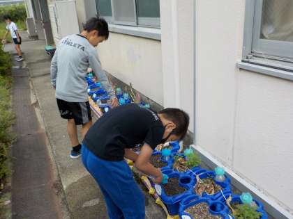 先日,種まきをしたホウセンカの水やりを朝からがんばっています。早く芽が出てほしいですね。