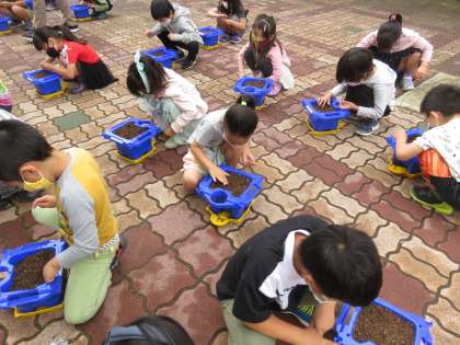 子どもたちが楽しみにしていた,あさがおの種を植えました。