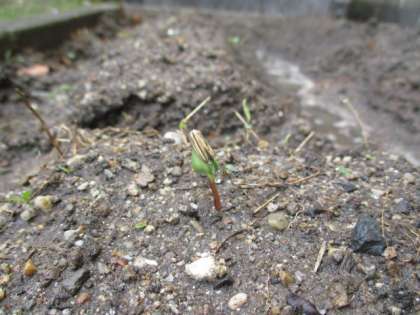 理科の学習で「ホウセンカ」と「ヒマワリ」の種を植えました。植物は,たねからどのように育つのか,これから観察していきます。水やりをしていると,「あっ!芽が出てる!」と子どもたちが見つけました。かわいい芽が出でいます。
