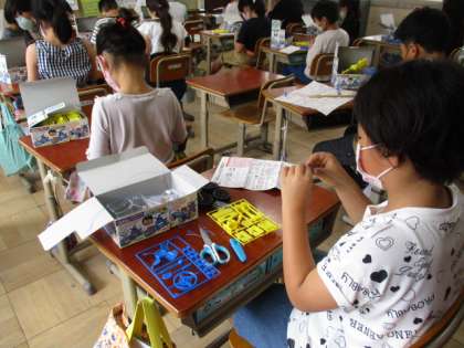 理科では「電池のはたらき」の学習をしています。乾電池を使ってモーター回して,気づいたことを話し合うために,まずは,送風機を作りました。細かな部品がたくさんあるのを見て,子供たちはワクワクしながら取り組んでいました。これから,この送風機を使って乾電池のはたらきを色々調べていきます。
