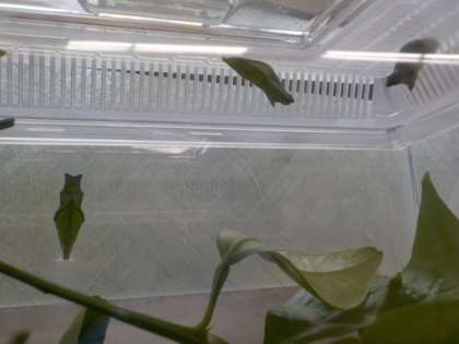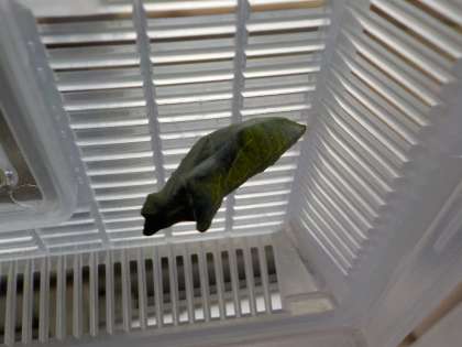教室で育てているアゲハチョウの幼虫も「さなぎ」になりました。きれいなアゲハチョウになるのが楽しみです。