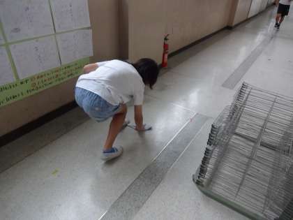 図画工作のあと,そっと廊下を見ていると,キラリ発見!!