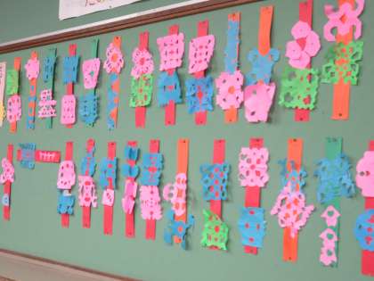 みんなの作品を教室に飾ると明るく楽しくなりますね。