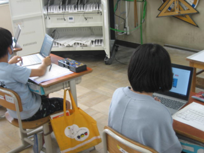 総合的な学習の時間で,5年生は調べ学習にGIGAタブレットを活用していました。使いこなせていますね!