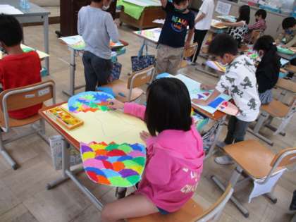 「いろんな色を使って描こう。」 「色紙で,お魚を作って貼ろうかな。」