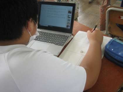 今日の総合的な学習の時間は,昨日の続きでした。一人一人がタブレットを駆使して,調べ学習を進めています。まとめ終わったら,友達と交流です。