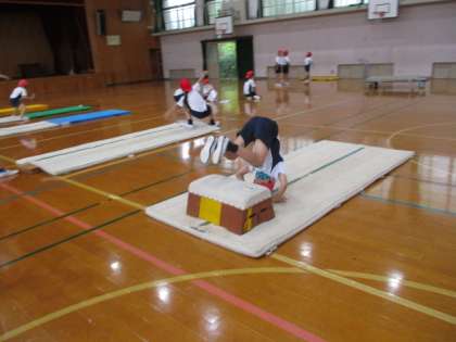 体育科のマットの学習では,少しがんばれば出来そうな技を選んで挑戦しています。学習カードの使いながら,技を確認する姿がありました。友だちに,「もっと足を伸ばしたら立ちやすいよ。」「今の出来てたよ!」など,アドバイスをしながら取り組んでいました。