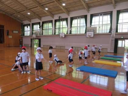 1年生は,今日,体育館で「たちはばとび」に挑戦しました。