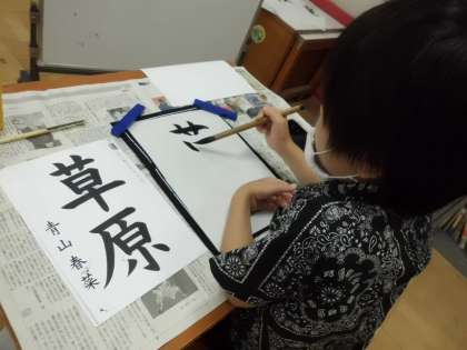書写の時間です。「もう一枚書きます!」や「よし,これでいい。」と自分の納得いくまで書き,納得したものを作品にしました♪「草原」って難しい…。