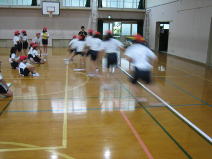 体育館で反復横跳びなどをしました。さすが4年生,動きが機敏すぎて,写真にハッキリ写りませんでした!