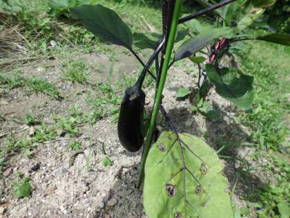 とってもおいしそうな夏野菜たちがたけのこ畑でとれました!子ども達は,「こんなに大きくなっている。」,「水やりを頑張ったからだ!」とニコニコしながら収穫をしていました。