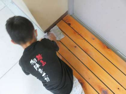 あまり人が気づかないところを丁寧に拭き掃除している人。