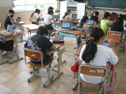 タブレットでいろいろな料理の中から,献立をたて,献立をたてるポイントについて知った後,再度,栄養バランスのよい献立をたてました。