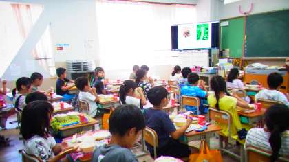 和(なごみ)献立の動画を見て,地元でとれるものを地元で消費する,地産地消のよさを学びました。