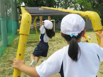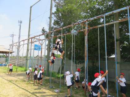 お友だちの「がんばれ!」の応援を背に,汗びっしょりになりながら何回も挑戦しました。力尽きて落ちてしまってもあきらめない姿はとてもかっこいいなあと思います。