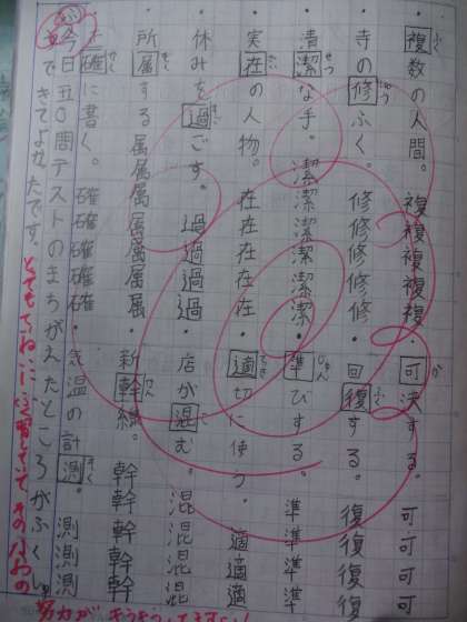 週予定を見て,テストがあると確認すると,自分でテスト前に自主勉強で既習内容を復習したりまとめたり姿が見えます!!漢字の練習を何度もしたり,熟語を集めたり,社会の内容をまとめたり・・・。どんな勉強をするか自分で工夫して考え取り組んでいます。